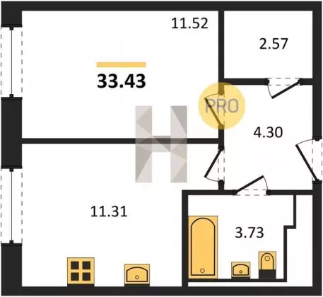 | Площадь, кв.м. | 33.43 |