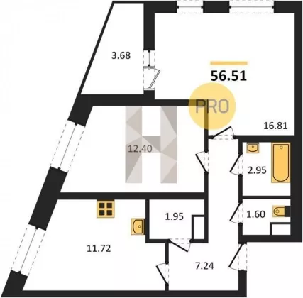 Квартира: 2 к 56,51 кв.м., 7 этаж в комплексе ЛайнерЪ, 1 очередь, корп.1, сдача: 3кв. , этажей: 17, адрес Октябрьская наб., , Застройщик: РосСтройИнвест.