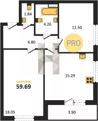 Квартира: 2 к 59,69 кв.м., 2 этаж в комплексе ЛайнерЪ, 1 очередь, корп.1, сдача: 3кв. , этажей: 17, адрес Октябрьская наб., , Застройщик: РосСтройИнвест.