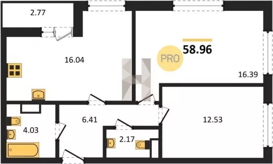 Квартира: 2 к 58,96 кв.м., 7 этаж в комплексе ЛайнерЪ, 1 очередь, корп.1, сдача: 3кв. , этажей: 17, адрес Октябрьская наб., , Застройщик: РосСтройИнвест.