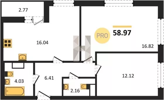 Квартира: 2 к 58,97 кв.м., 11 этаж в комплексе ЛайнерЪ, 1 очередь, корп.1, сдача: 3кв. , этажей: 17, адрес Октябрьская наб., , Застройщик: РосСтройИнвест.