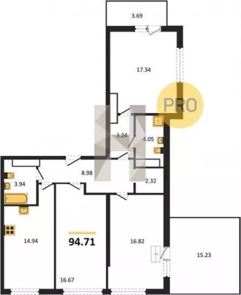 Квартира: 3 к 94,71 кв.м., 13 этаж в комплексе ЛайнерЪ, 1 очередь, корп.1, сдача: 3кв. , этажей: 17, адрес Октябрьская наб., , Застройщик: РосСтройИнвест.