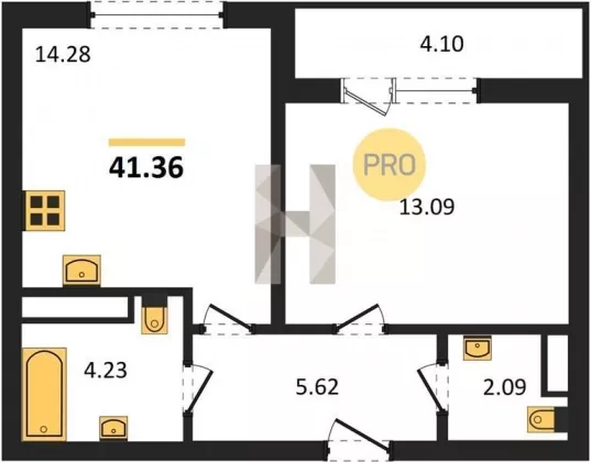 Квартира: 1 к 41,36 кв.м., 13 этаж в комплексе ЛайнерЪ, 1 очередь, корп.1, сдача: 3кв. , этажей: 17, адрес Октябрьская наб., , Застройщик: РосСтройИнвест.
