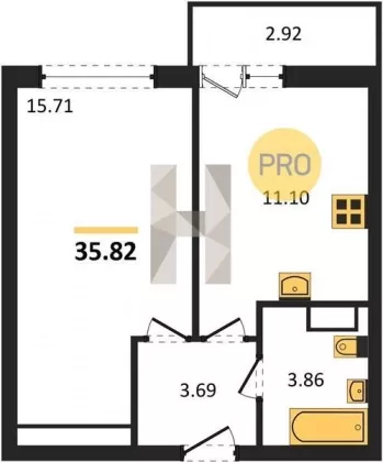 Квартира: 1 к 35,82 кв.м., 7 этаж в комплексе ЛайнерЪ, 1 очередь, корп.1, сдача: 3кв. , этажей: 17, адрес Октябрьская наб., , Застройщик: РосСтройИнвест.