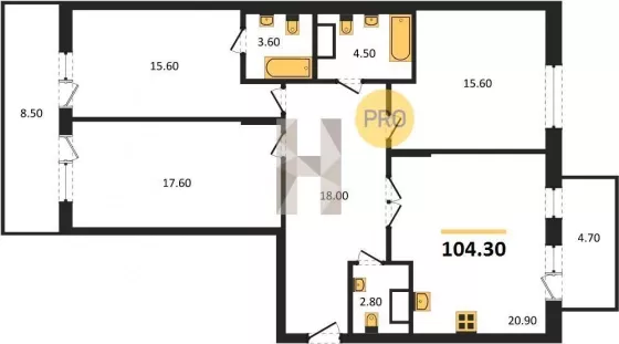 | Площадь, кв.м. | 104.3 |