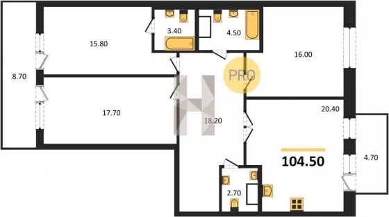 Название ЖК Lotos Club Площадь, кв.м. 104.5 Жилая площадь 49.5 Площадь кухни, кв.м. 20.4 Комнат в квартире 3 Этаж 4 Этажность 8 Материал стен Монолитный Ремонт Предчистовая