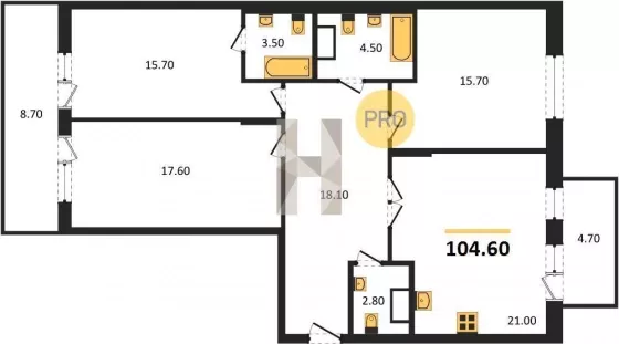 Название ЖК Lotos Club Площадь, кв.м. 104.6 Жилая площадь 49 Площадь кухни, кв.м. 21 Комнат в квартире 3 Этаж 5 Этажность 8 Материал стен Монолитный Ремонт Предчистовая