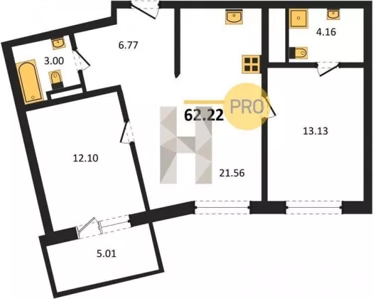 Название ЖК OKLA Площадь, кв.м. 62.22 Жилая площадь 25.23 Площадь кухни, кв.м. 21.56 Комнат в квартире 2 Этаж 2 Этажность 8 Материал стен Кирпич Ремонт Косметический