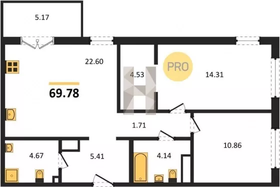 | Площадь, кв.м. | 69.78 |