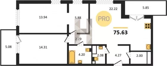 | Площадь, кв.м. | 75.63 |