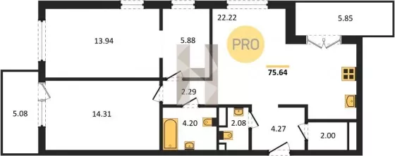 | Площадь, кв.м. | 75.64 |