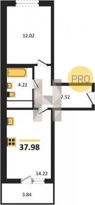 Название ЖК ЯСНО.Янино Площадь, кв.м. 37.98 Жилая площадь 12.02 Площадь кухни, кв.м. 14.22 Комнат в квартире 1 Этаж 8 Этажность 8 Материал стен Кирпич Ремонт Косметический