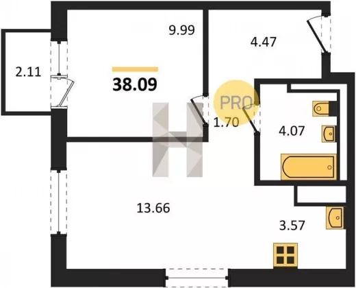 | Площадь, кв.м. | 38.09 |