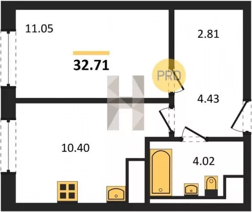 | Площадь, кв.м. | 32.71 |