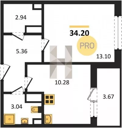 | Площадь, кв.м. | 34.2 |