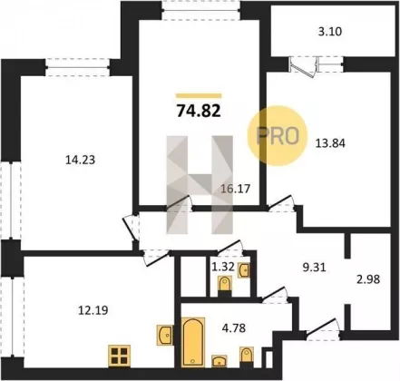 | Площадь, кв.м. | 74.82 |