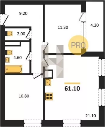 | Площадь, кв.м. | 61.1 |