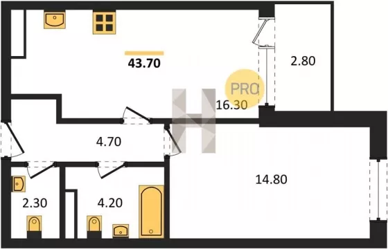 Название ЖК Тайм Сквер Площадь, кв.м. 43.7 Жилая площадь 14.8 Площадь кухни, кв.м. 16.3 Комнат в квартире 1 Этаж 4 Этажность 13 Материал стен Кирпич Ремонт Предчистовая