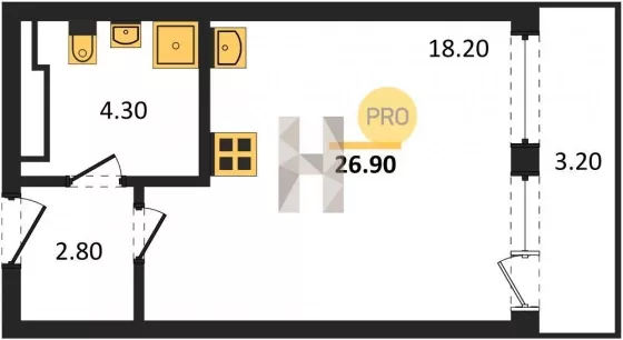 Студия: 26,90 кв.м., 6 этаж в комплексе Тайм Сквер, 3 очередь, корп.7, сдача: 2кв. , этажей: 13, адрес Глухарская ул., д. 7, Застройщик: РосСтройИнвест.