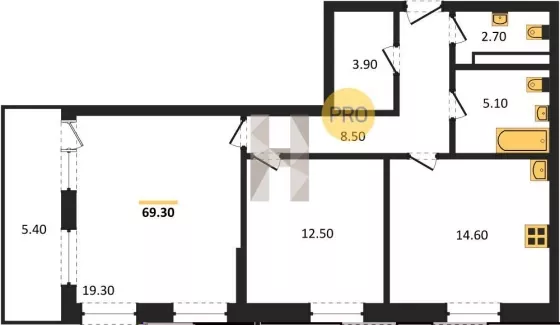 | Площадь, кв.м. | 69.3 |