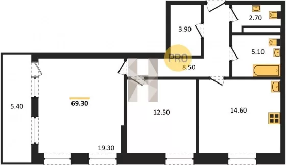 Название ЖК Тайм Сквер Площадь, кв.м. 69.3 Жилая площадь 31.8 Площадь кухни, кв.м. 14.6 Комнат в квартире 2 Этаж 9 Этажность 13 Материал стен Кирпич Ремонт Без отделки