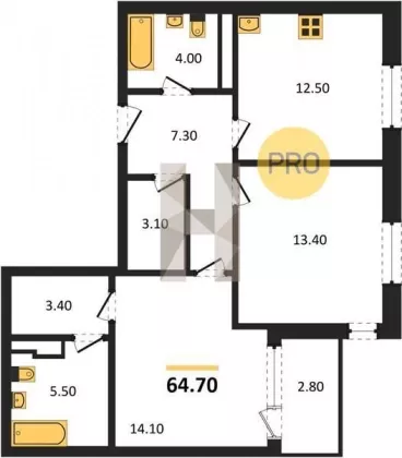 | Площадь кухни, кв.м. | 12.5 |