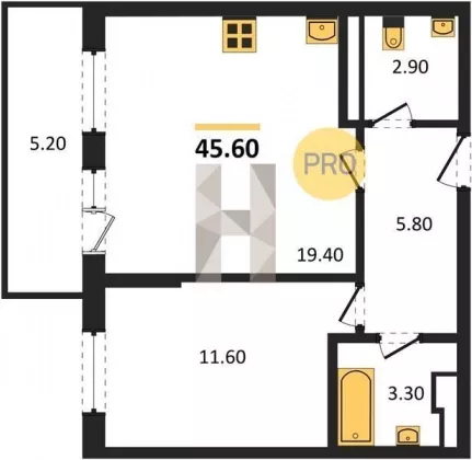 | Площадь, кв.м. | 45.6 |