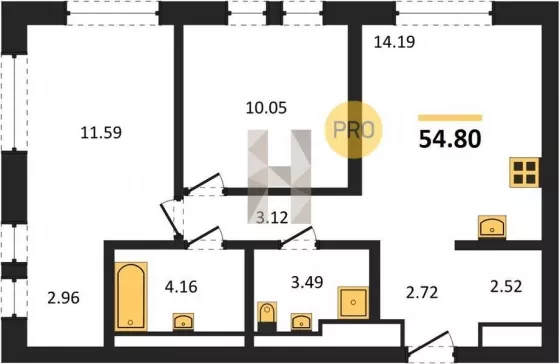 | Площадь кухни, кв.м. | 14.19 |
