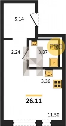 Название ЖК Невская Долина Площадь, кв.м. 26.11 Жилая площадь 11.5 Площадь кухни, кв.м. 3.36 Комнат в квартире 1 Этаж 1 Этажность 15 Материал стен Кирпич Ремонт Чистовая