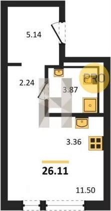 Название ЖК Невская Долина Площадь, кв.м. 26.11 Жилая площадь 11.5 Площадь кухни, кв.м. 3.36 Комнат в квартире 1 Этаж 14 Этажность 15 Материал стен Кирпич Ремонт Чистовая