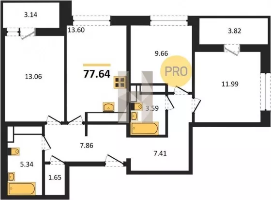 Название ЖК Cube Площадь, кв.м. 77.64 Жилая площадь 34.71 Площадь кухни, кв.м. 13.6 Комнат в квартире 3 Этаж 18 Этажность 18 Материал стен Кирпич Ремонт Без отделки