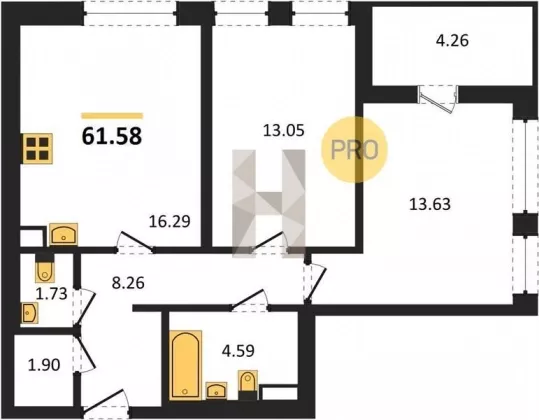 | Площадь, кв.м. | 61.58 |