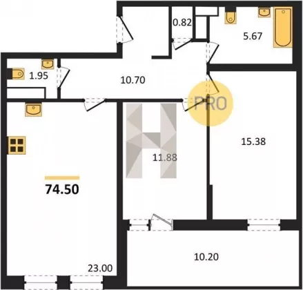 Название ЖК Cube Площадь, кв.м. 74.5 Жилая площадь 27.26 Площадь кухни, кв.м. 23 Комнат в квартире 2 Этаж 5 Этажность 18 Материал стен Кирпич Ремонт Без отделки