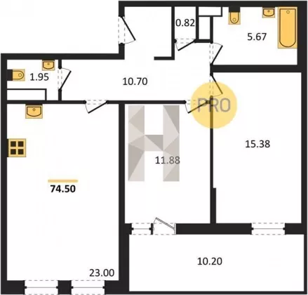 | Площадь, кв.м. | 74.5 |