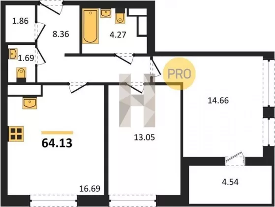 | Площадь, кв.м. | 64.13 |