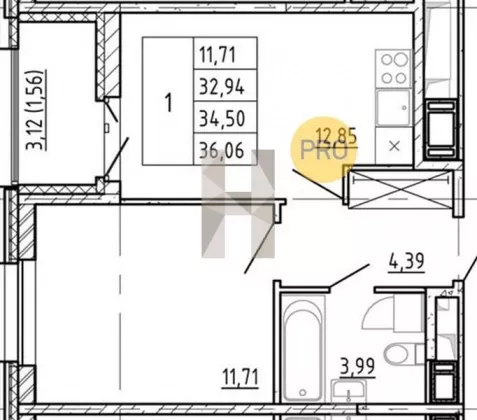 | Площадь кухни, кв.м. | 12.85 |