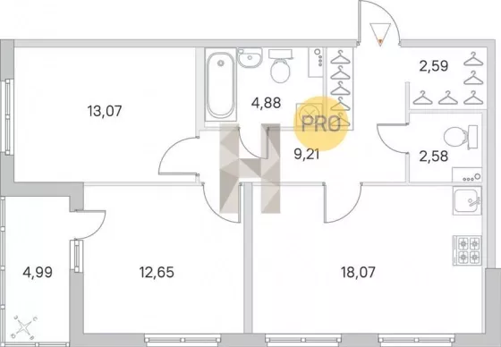Название ЖК ЯСНО.Янино Площадь, кв.м. 63.05 Жилая площадь 25.72 Площадь кухни, кв.м. 18.07 Комнат в квартире 2 Этаж 1 Этажность 8 Материал стен Кирпич Ремонт Косметический