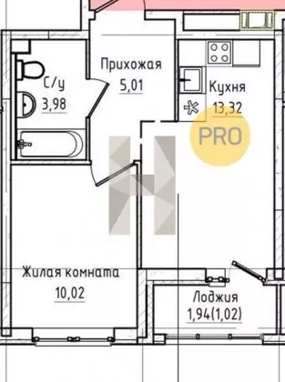 | Площадь кухни, кв.м. | 13.32 |