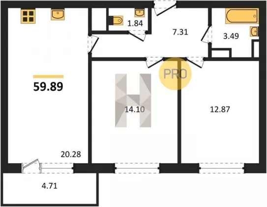 Название ЖК ЮгТаун.Австралия Площадь, кв.м. 59.89 Жилая площадь 26.97 Площадь кухни, кв.м. 20.28 Комнат в квартире 2 Этаж 2 Этажность 5 Материал стен Монолитный Ремонт Косметический