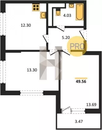 Квартира: 2 к 49,56 кв.м., 13 этаж в комплексе Сандэй, 4 очередь, корп.7.2, сдача: 4кв. , этажей: 17, адрес 2-я Комсомольская ул., , Застройщик: Группа Самолет.