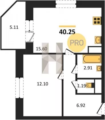 | Площадь, кв.м. | 40.25 |