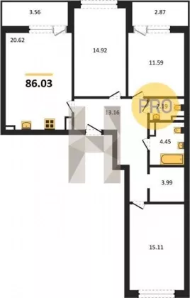Название ЖК Б15 Площадь, кв.м. 86.03 Жилая площадь 41.62 Площадь кухни, кв.м. 20.62 Комнат в квартире 3 Этаж 3 Этажность 17 Материал стен Экспериментальные материалы Ремонт Предчистовая