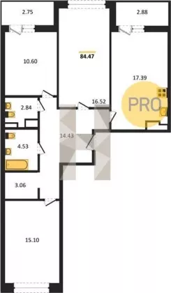 Название ЖК Б15 Площадь, кв.м. 84.47 Жилая площадь 42.22 Площадь кухни, кв.м. 17.39 Комнат в квартире 3 Этаж 6 Этажность 17 Материал стен Экспериментальные материалы Ремонт Предчистовая