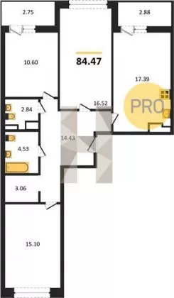 Название ЖК Б15 Площадь, кв.м. 84.47 Жилая площадь 42.22 Площадь кухни, кв.м. 17.39 Комнат в квартире 3 Этаж 10 Этажность 17 Материал стен Экспериментальные материалы Ремонт Предчистовая