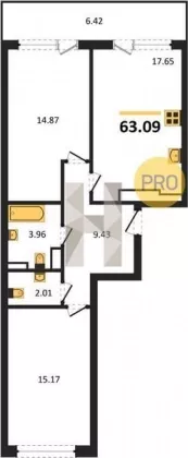 Название ЖК Б15 Площадь, кв.м. 63.09 Жилая площадь 30.04 Площадь кухни, кв.м. 17.65 Комнат в квартире 2 Этаж 17 Этажность 17 Материал стен Экспериментальные материалы Ремонт Предчистовая