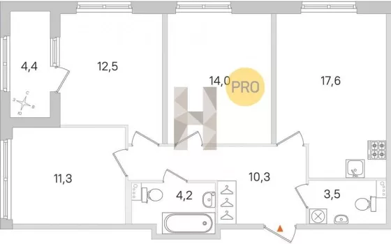 Название ЖК Дубровский Площадь, кв.м. 73.4 Жилая площадь 37.8 Площадь кухни, кв.м. 17.6 Комнат в квартире 3 Этаж 1 Этажность 4 Материал стен Монолитный Ремонт Предчистовая
