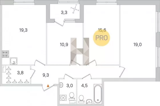 | Площадь кухни, кв.м. | 19.3 |