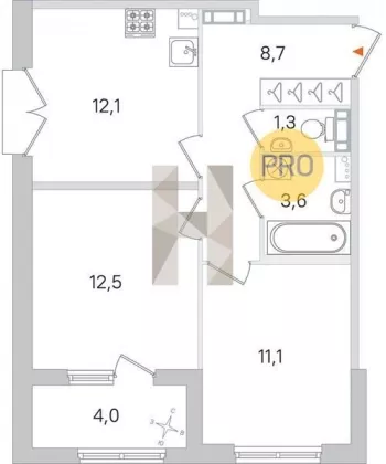 | Площадь кухни, кв.м. | 12.1 |