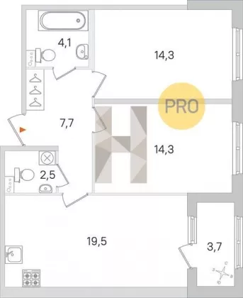 | Площадь кухни, кв.м. | 19.5 |