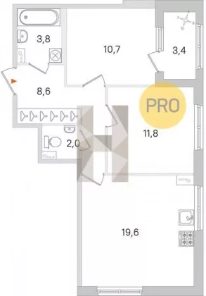 | Площадь кухни, кв.м. | 19.6 |